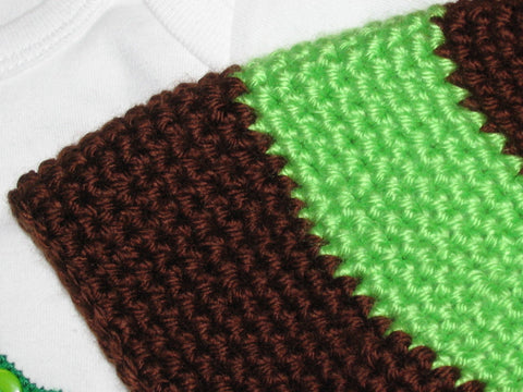 A cute embroidered onsie with matching crochet earflap hat and ball.